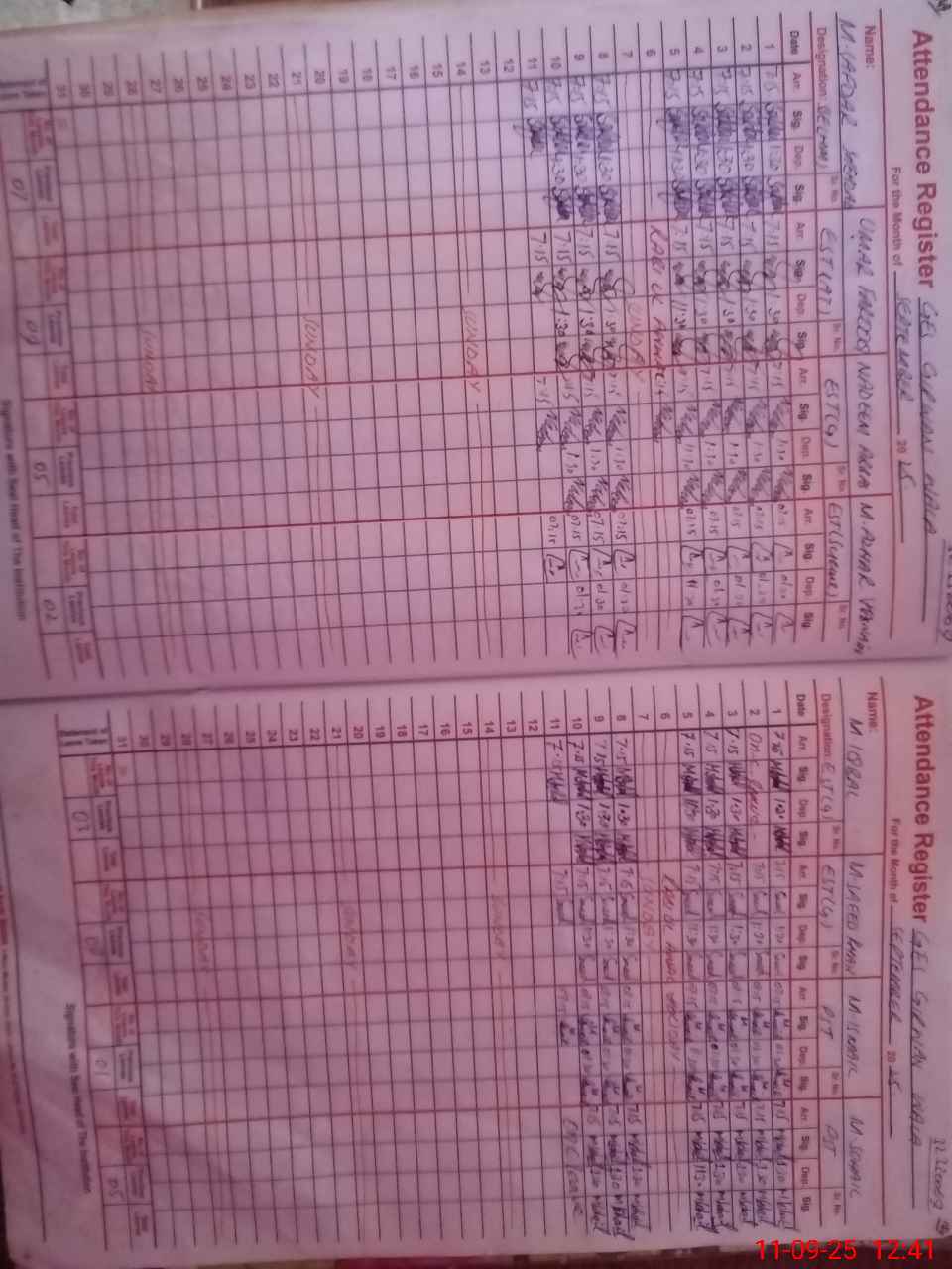 | CNIC | Full Name | Designation | R/C | Absence During Last Calender Month |