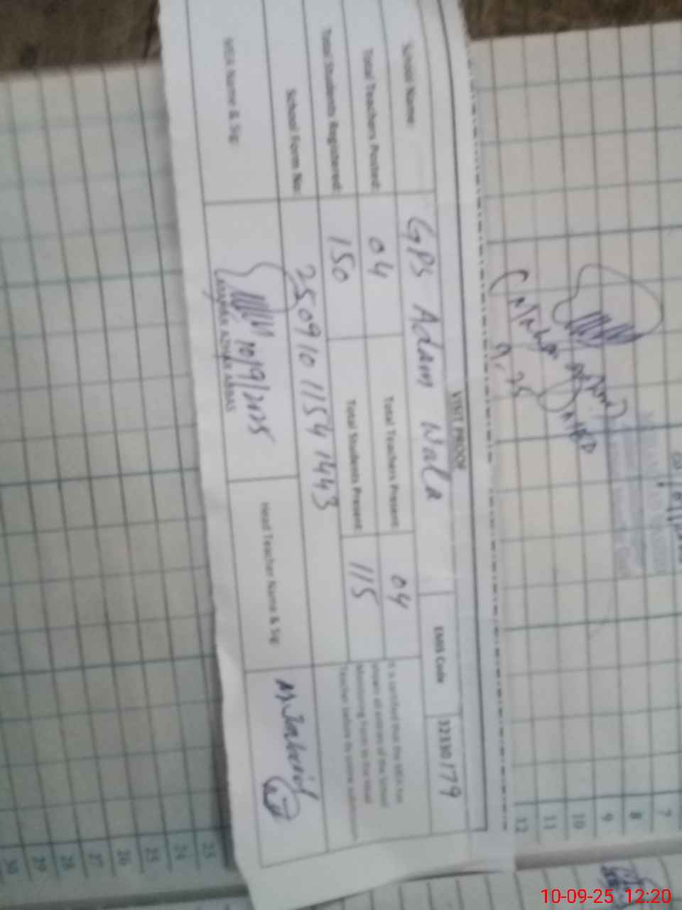 | EMIS Code: 32330179 | Name of School: GPS ADAM WALA | |||