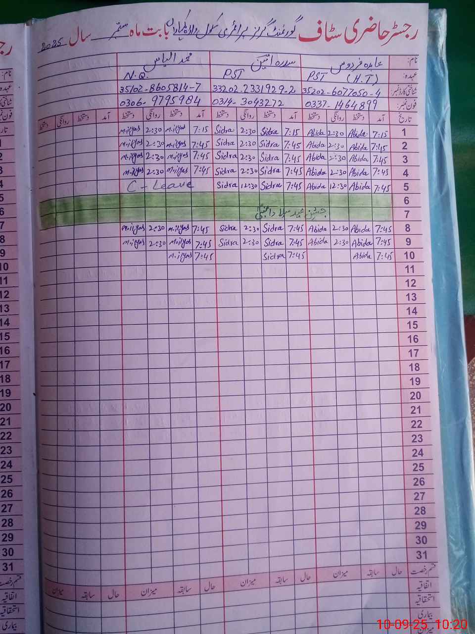 | Name: AB**** FI**** Designation: (School Headmaster's/Headmistress's) Head Mistress Phone/Cell Number: 03**** |