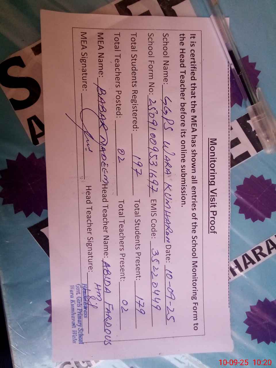 | EMIS Code: 35220449 | Name of School: GGPS WARA KUMHARAN | |||