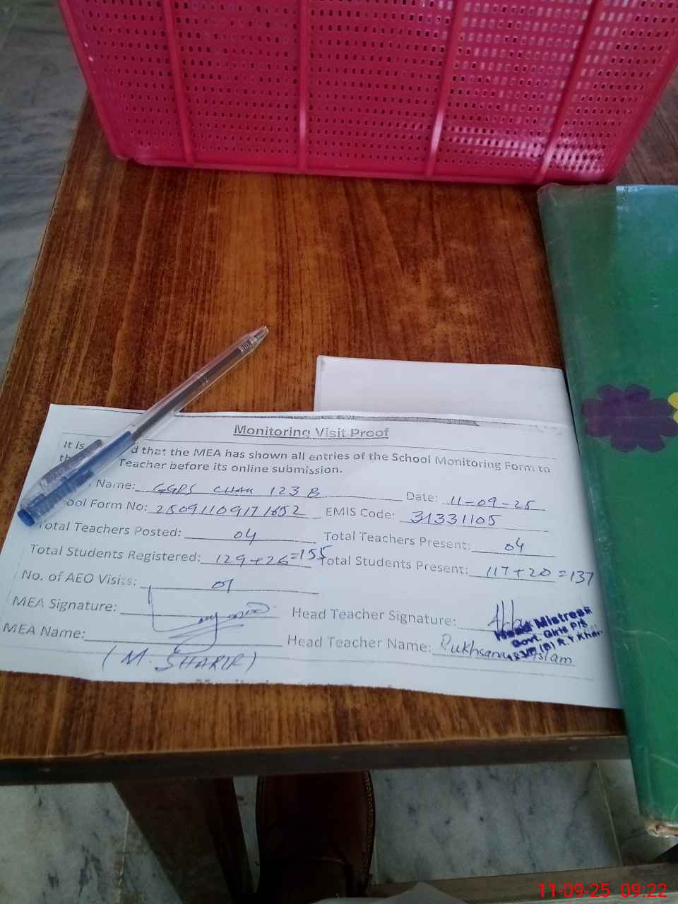 | EMIS Code: 31331105 | Name of School: GGPS 123 B | |||