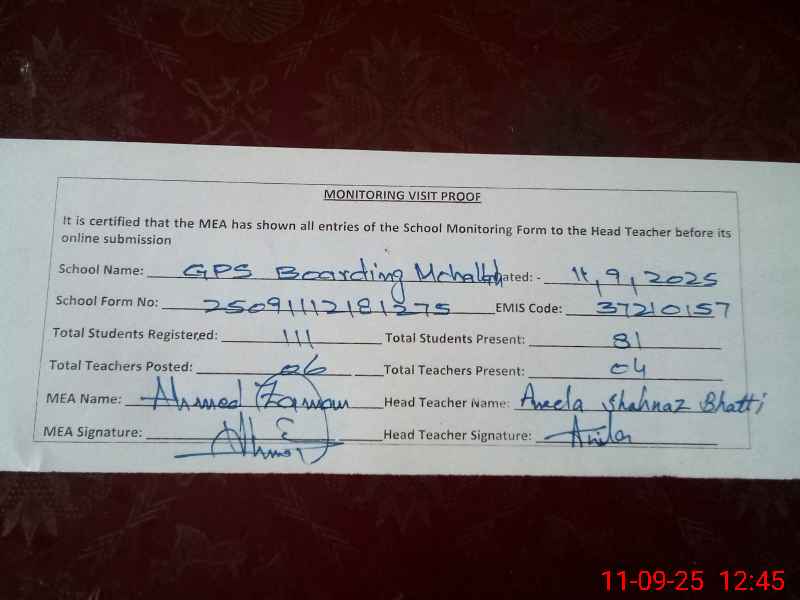 | EMIS Code: 37210157 | Name of School: GPS MC BOARDING MOHALLAH JHELUM | |||