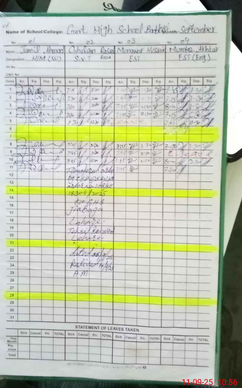 | Name: Ja**** Ah**** At**** Designation: (School Headmaster's/Headmistress's) Incharge Head Master Phone/Cell Number: 03**** |