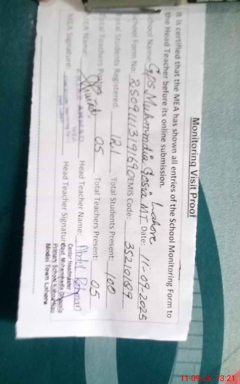 | EMIS Code: 35210189 | Name of School: GPS MUHAMMADDIA GHOUSIA | |||