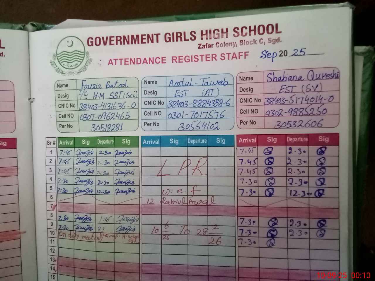 | EMIS Code: 38420214 | Name of School: GGHS ZAFAR COLONY SARGODHA | |||