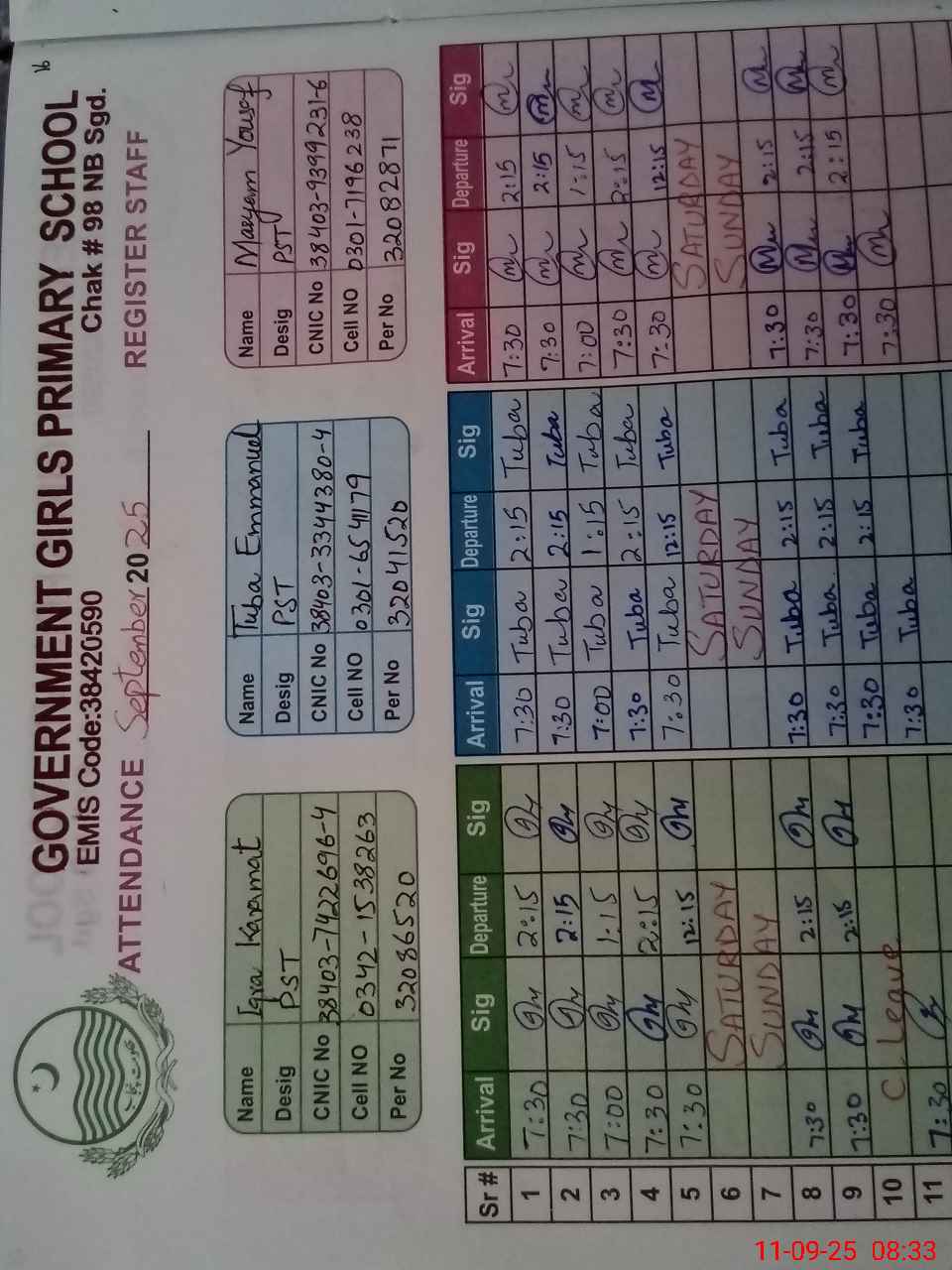 | EMIS Code: 38420590 | Name of School: GGPS CHAK NO.98 NB DERA DINDAR | |||