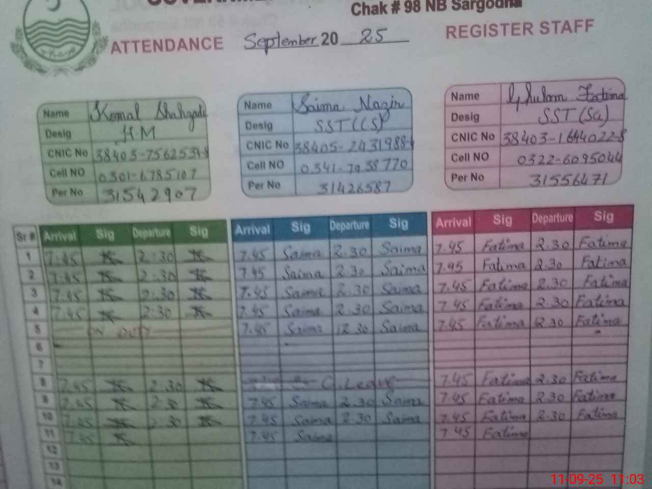 | EMIS Code: 38420085 | Name of School: GGHS CHAK NO.98 NB | |||