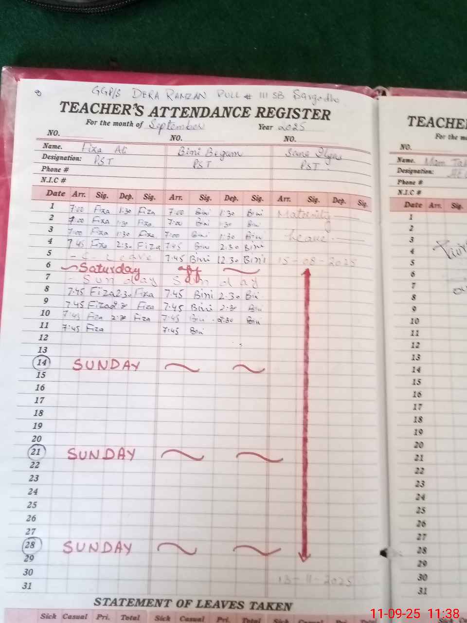 | 38**** | Sa**** Il**** | PST | Regular | 17 | 0 | 0 | 17 | 0 | 0 | 0 | 0 | 0 | Maternity |