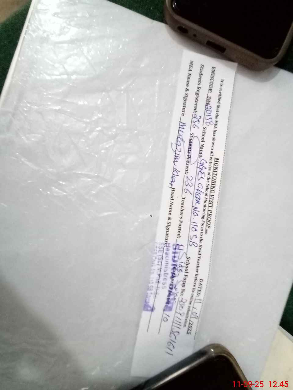 | Attendance Register | Head Teacher | MEA with School | Visit Proof |