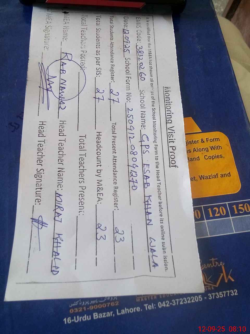 | EMIS Code: 38320260 | Name of School: GPS ESAB KHAN WALA | |||