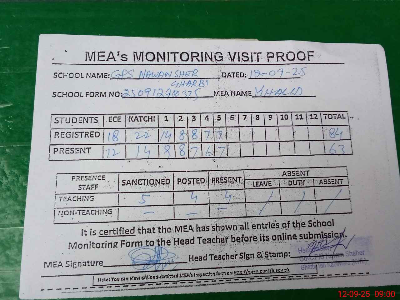 | EMIS Code: 36410515 | Name of School: GPS NAWAN SHEHR GHARBI, KABIRWALA | |||