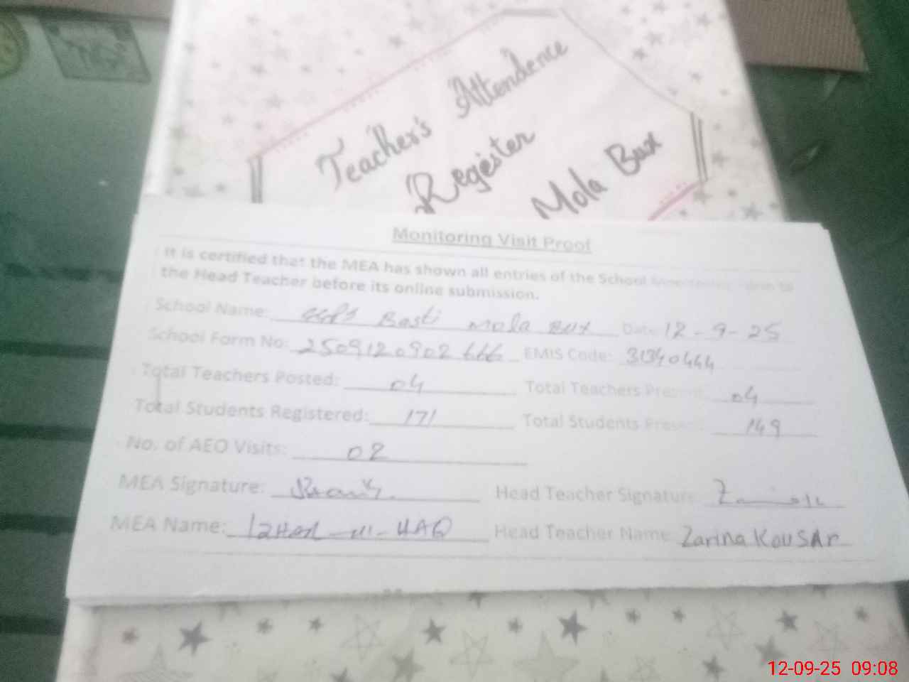 | EMIS Code: 31340444 | Name of School: GGPS BASTI MOLA BUKHSH | |||