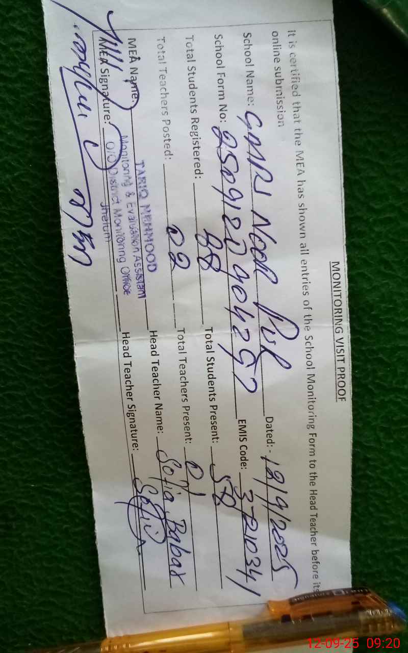 | EMIS Code: 37210341 | Name of School: GMPS NOOR PUR | |||