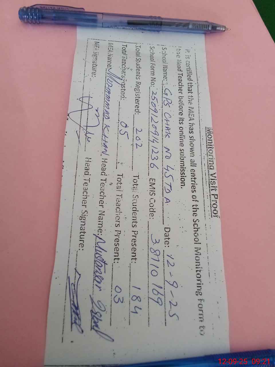 | EMIS Code: 38110169 | Name of School: GPS CHAK NO 45 TDA | |||
