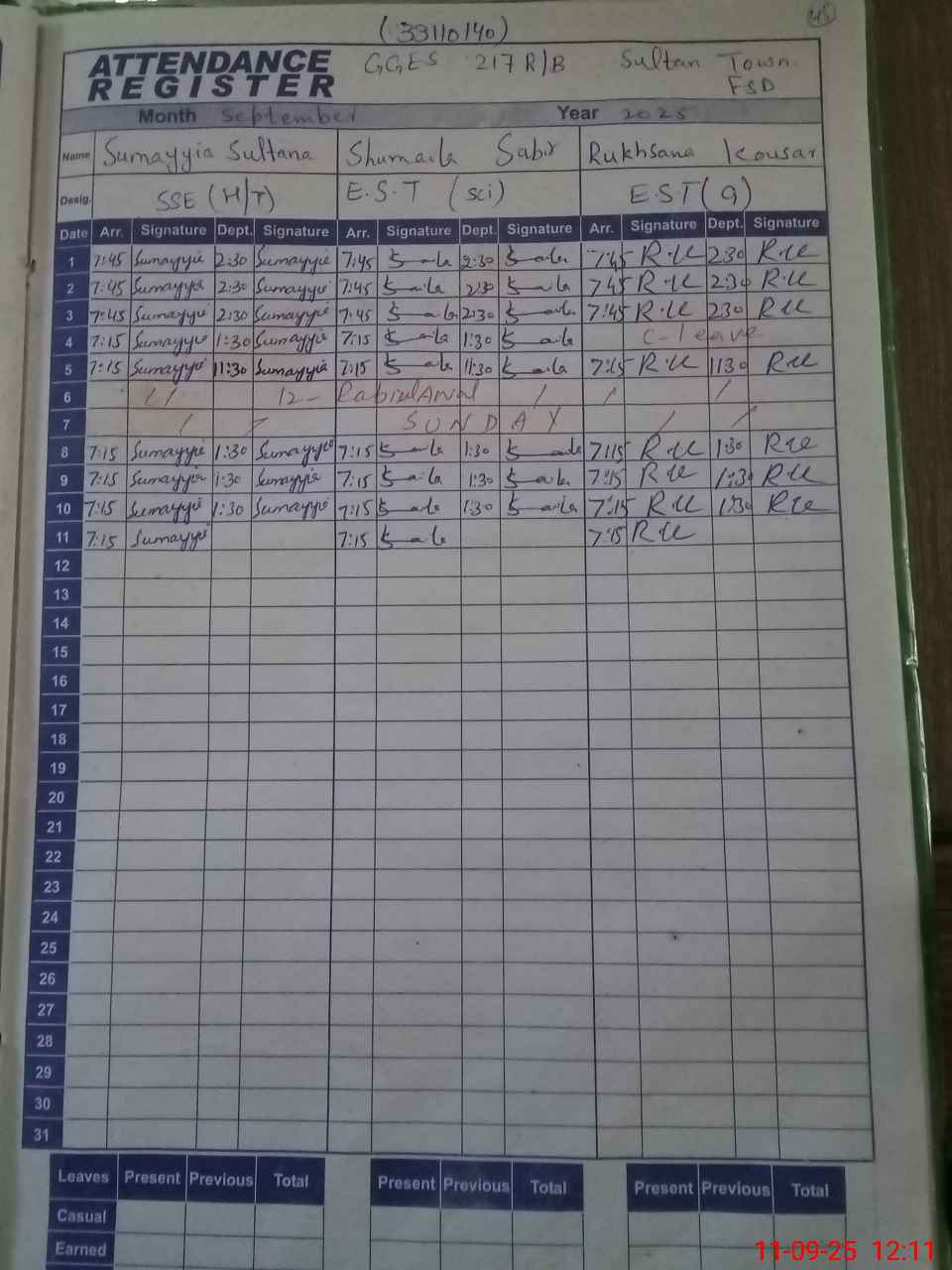 | No. of Students Present - Female | 15 | 0 | 24 | 44 | 51 | 60 | 60 | 51 | 54 | 53 | 61 | 473 | ||||