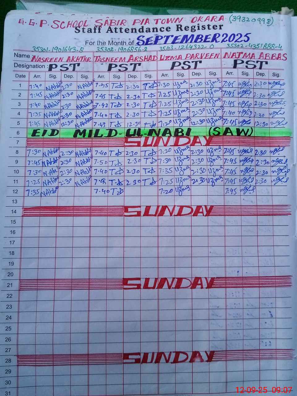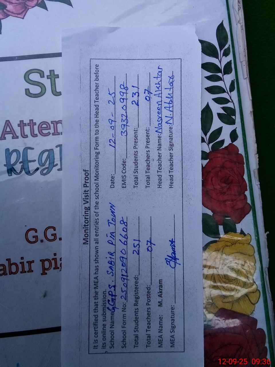 | EMIS Code: 39320998 | Name of School: GGPS SABIR PIA TOWN OKARA | |||