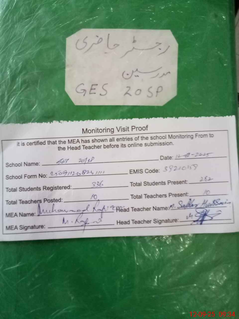 | EMIS Code: 39210159 | Name of School: GES 20/SP PAKPATTAN | |||
