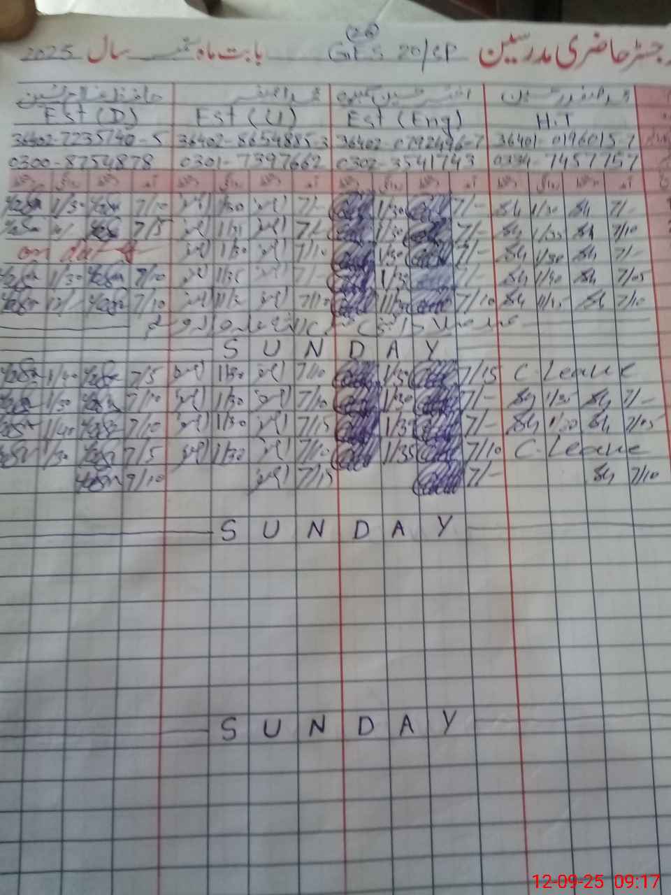 | Name: MU**** SA**** HU**** Designation: (School Headmaster's/Headmistress's) SST GENERAL Phone/Cell Number: 03**** |
