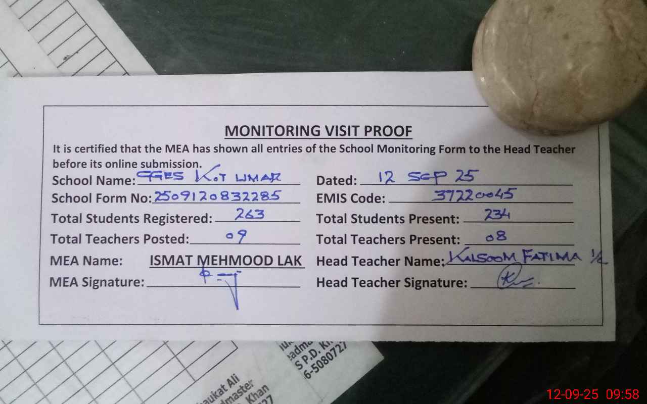 | EMIS Code: 37220045 | Name of School: GGES KOT UMMAR | |||