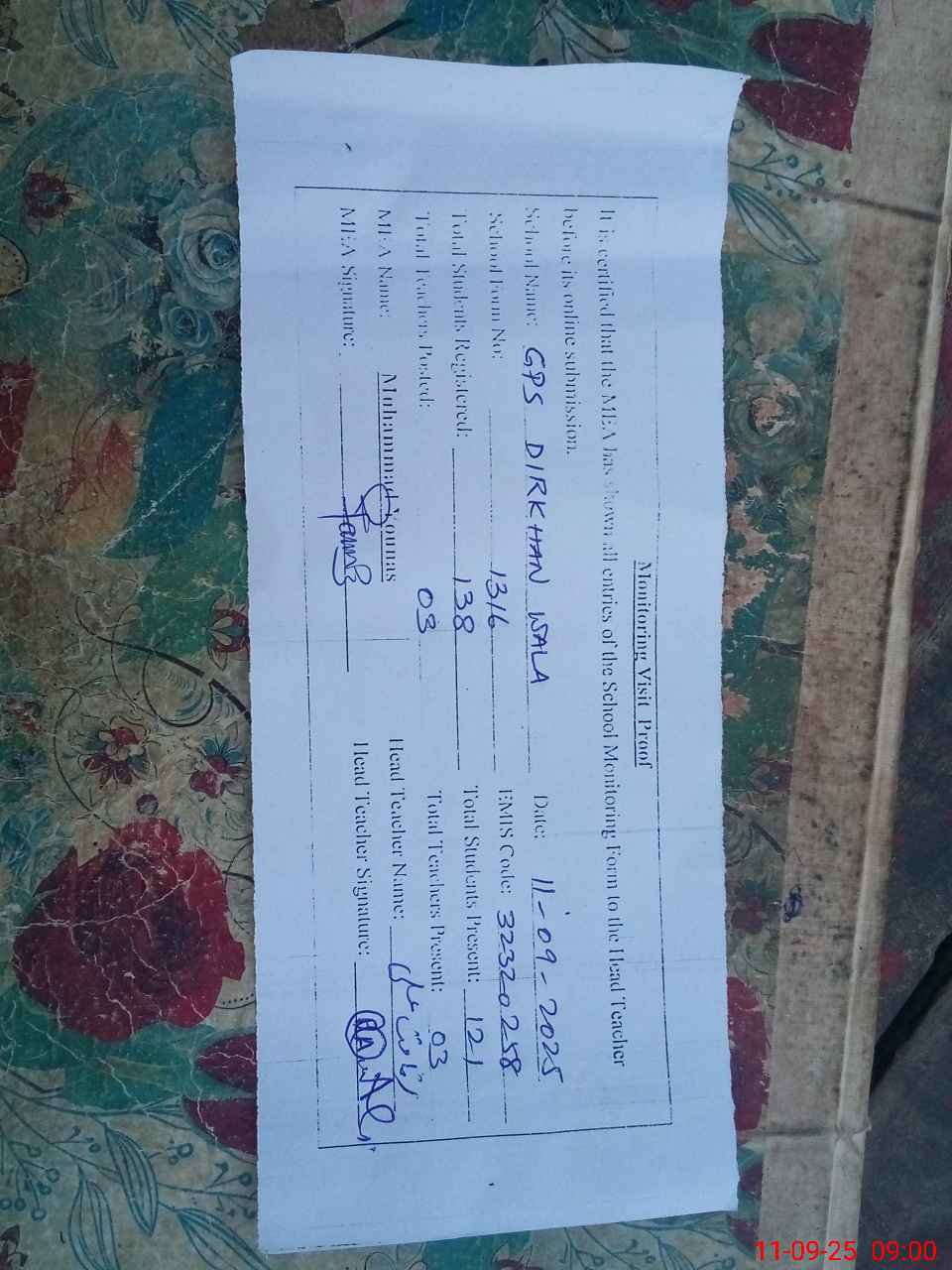 | EMIS Code: 32320258 | Name of School: GPS DIRKHAN WALA | |||