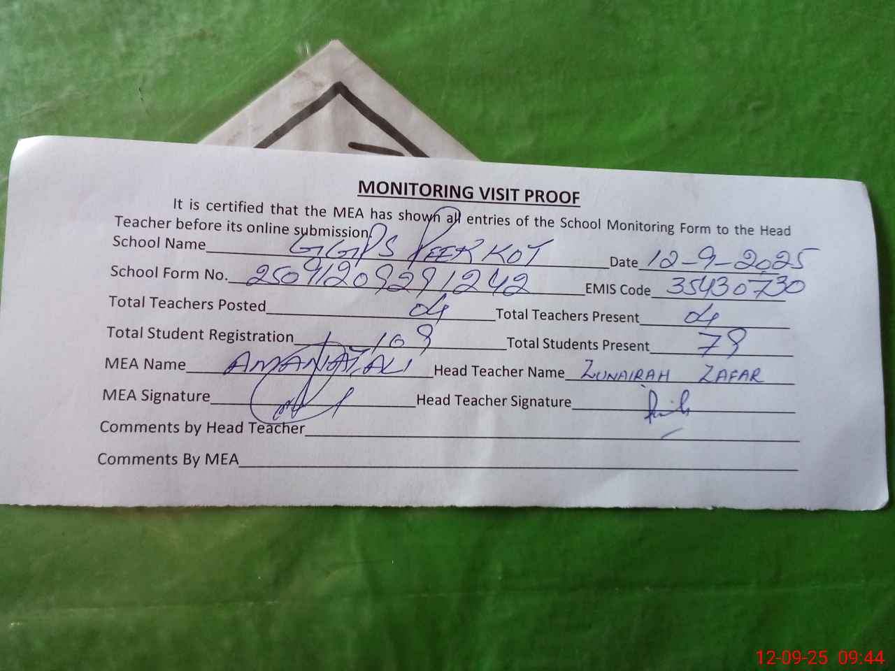 | EMIS Code: 35430730 | Name of School: GGPS PEER KOT | |||