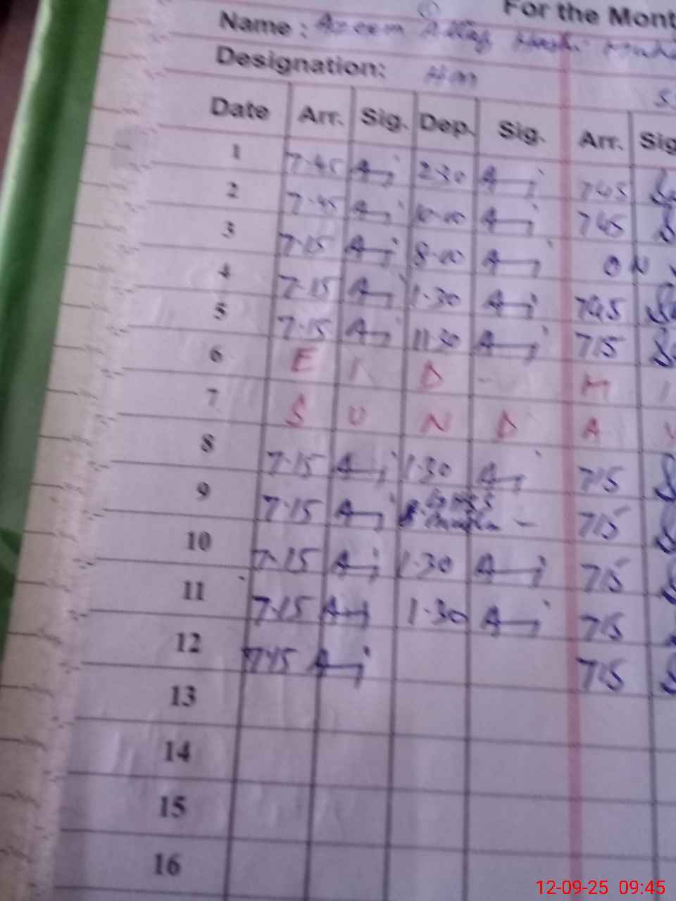 | Monitoring Date: 12-09-2025 | Start Time: 12-09-2025 09:39 AM | End Time: 12-09-2025 09:51 AM | Name of MEA: Is**** Ah**** | |