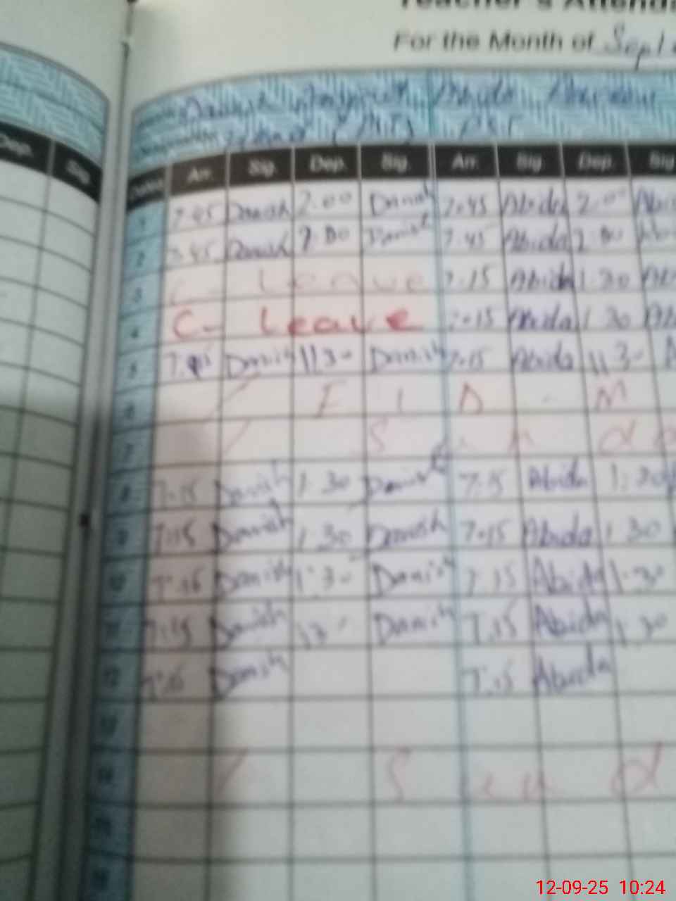 | Leave | Duty | Absent | Maternity | Medical | Ex- Pak |