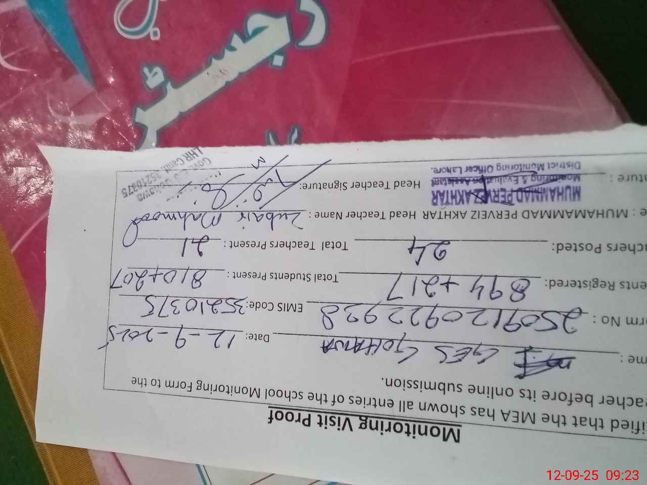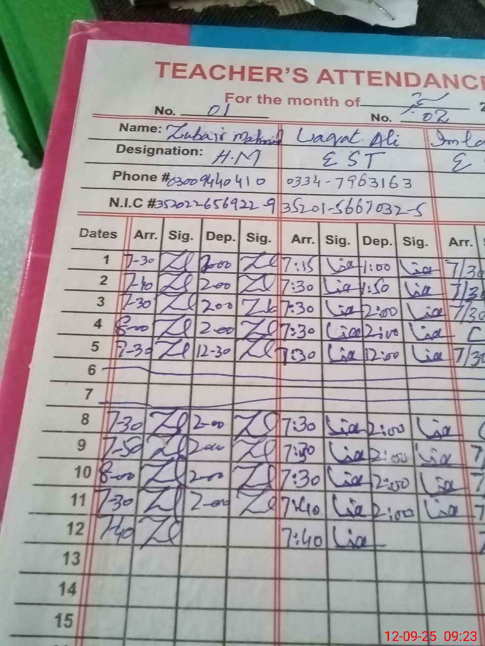 | Name: ZU**** ME**** Designation: (School Headmaster's/Headmistress's) SST Phone/Cell Number: 03**** |