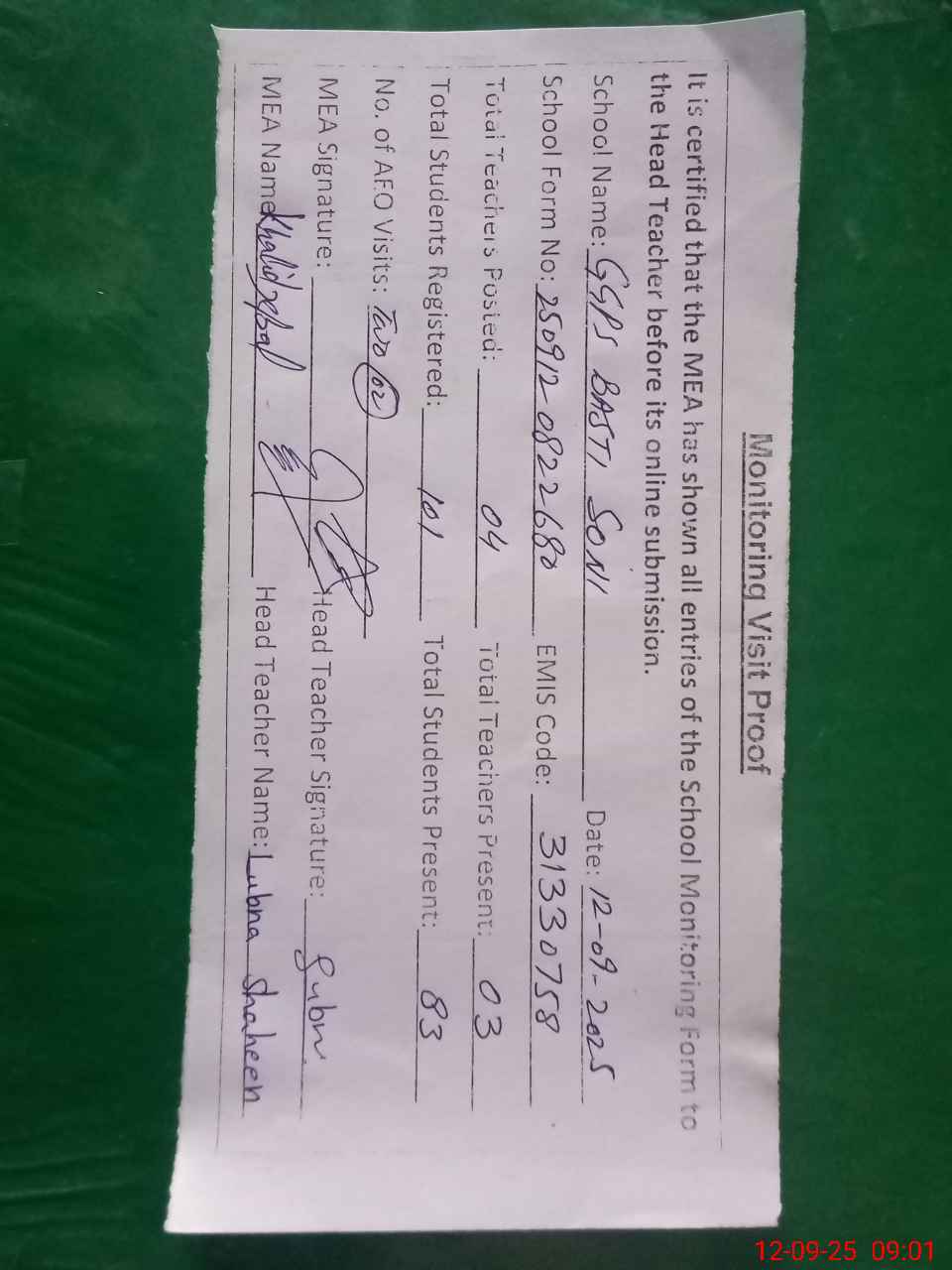 | EMIS Code: 31330758 | Name of School: GGPS BASTI SONI | |||