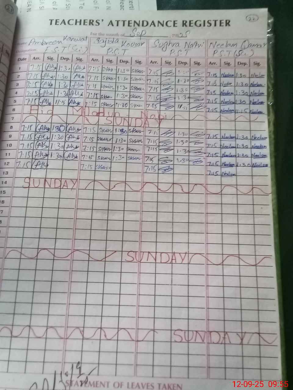 | Monitoring Date: 12-09-2025 | Start Time: 12-09-2025 09:51 AM | End Time: 12-09-2025 10:17 AM | Name of MEA: Kh**** Iq**** | |