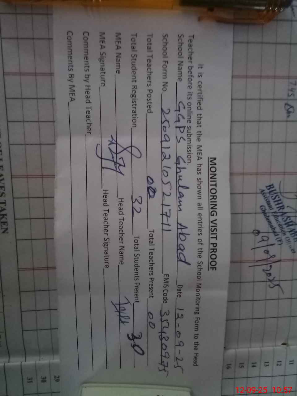 | EMIS Code: 35430975 | Name of School: GGPS GHULAM ABAD | |||