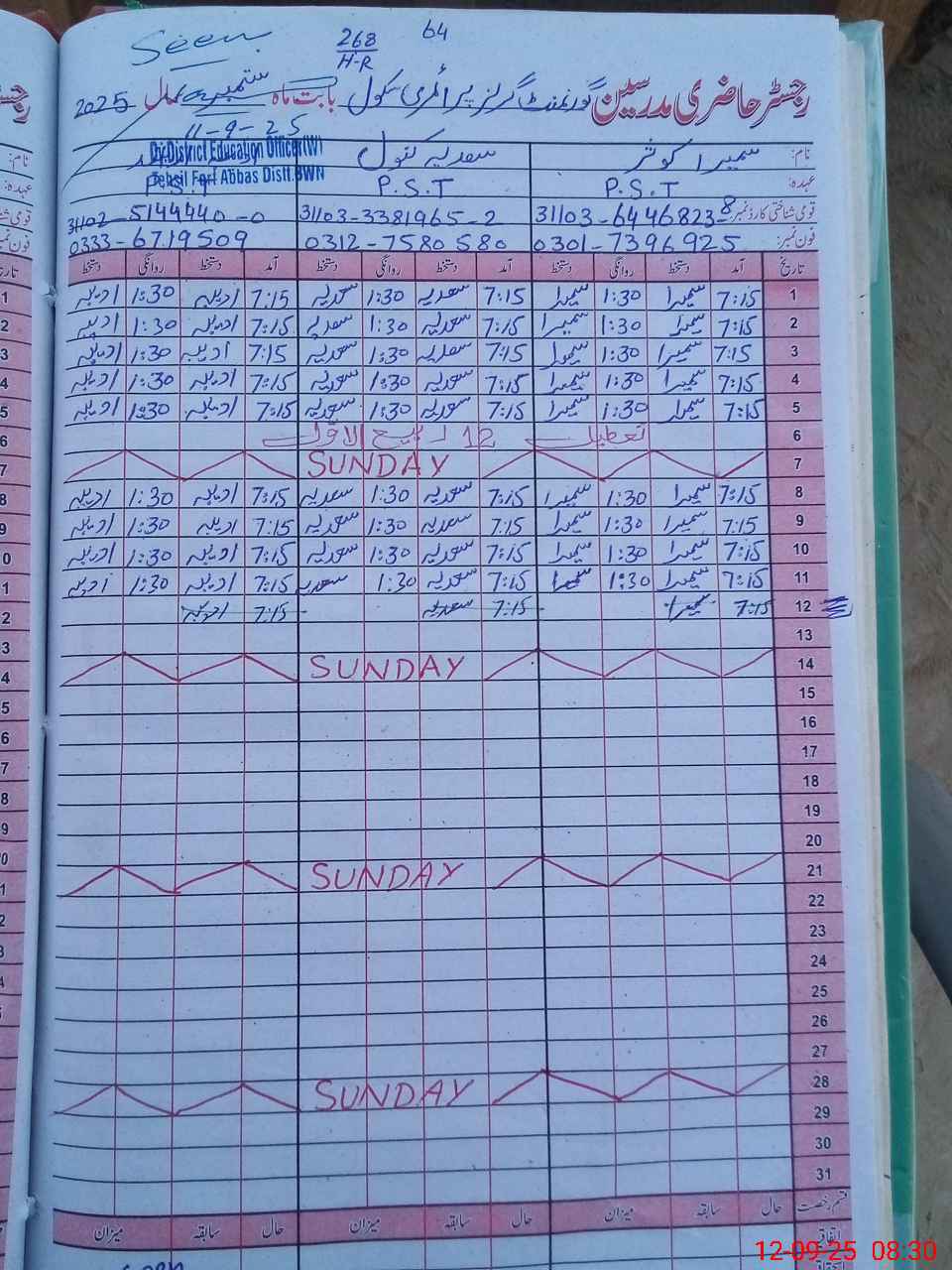 | Name: Su**** Ko**** Designation: (School Headmaster's/Headmistress's) PST Phone/Cell Number: 03**** |