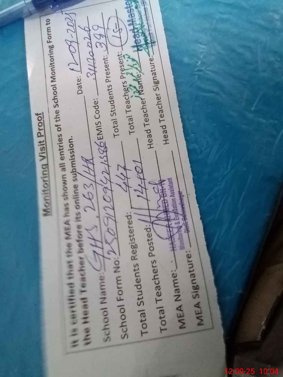 | EMIS Code: 31130026 | Name of School: GHS 263/HR | |||