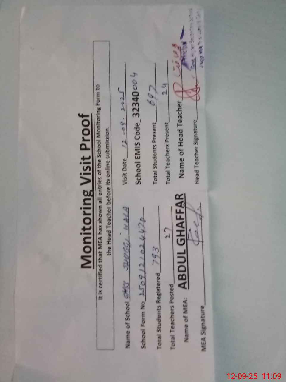 | EMIS Code: 32340004 | Name of School: GHSS JHUGGI WALA | |||