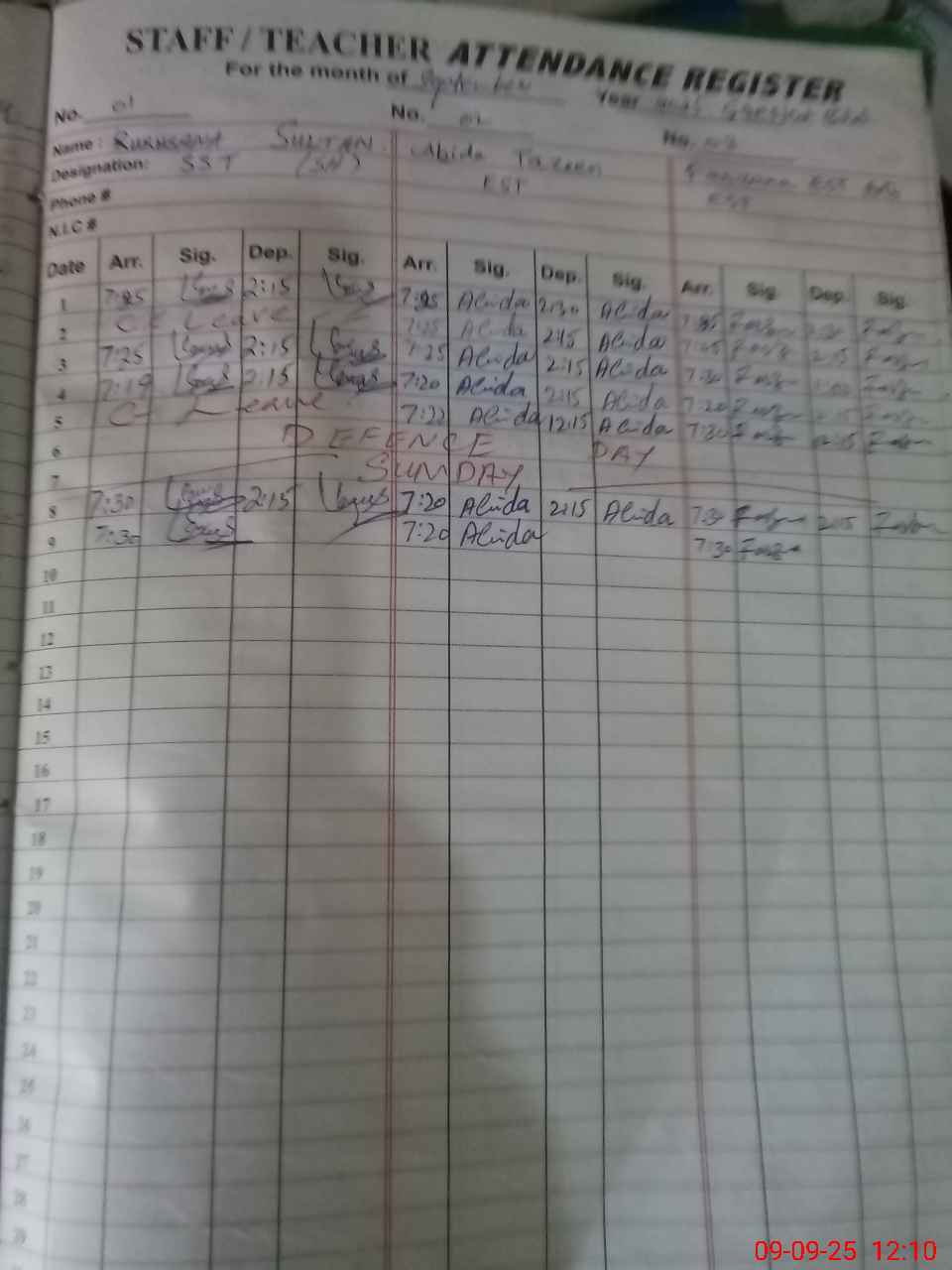 | 61**** | Mu**** Am**** Kh**** | PST | Temporary | 0 | 0 | 0 | 0 | 0 | 0 | 0 | 0 | 0 | Maternity |