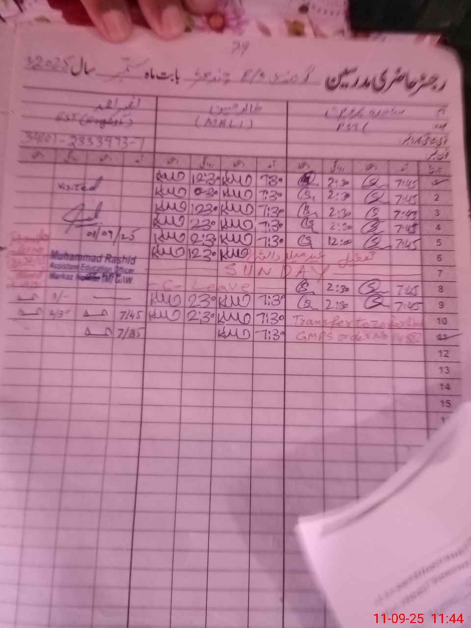 | Name: Um**** Ha**** Designation: (School Headmaster's/Headmistress's) EST Phone/Cell Number: 03**** |