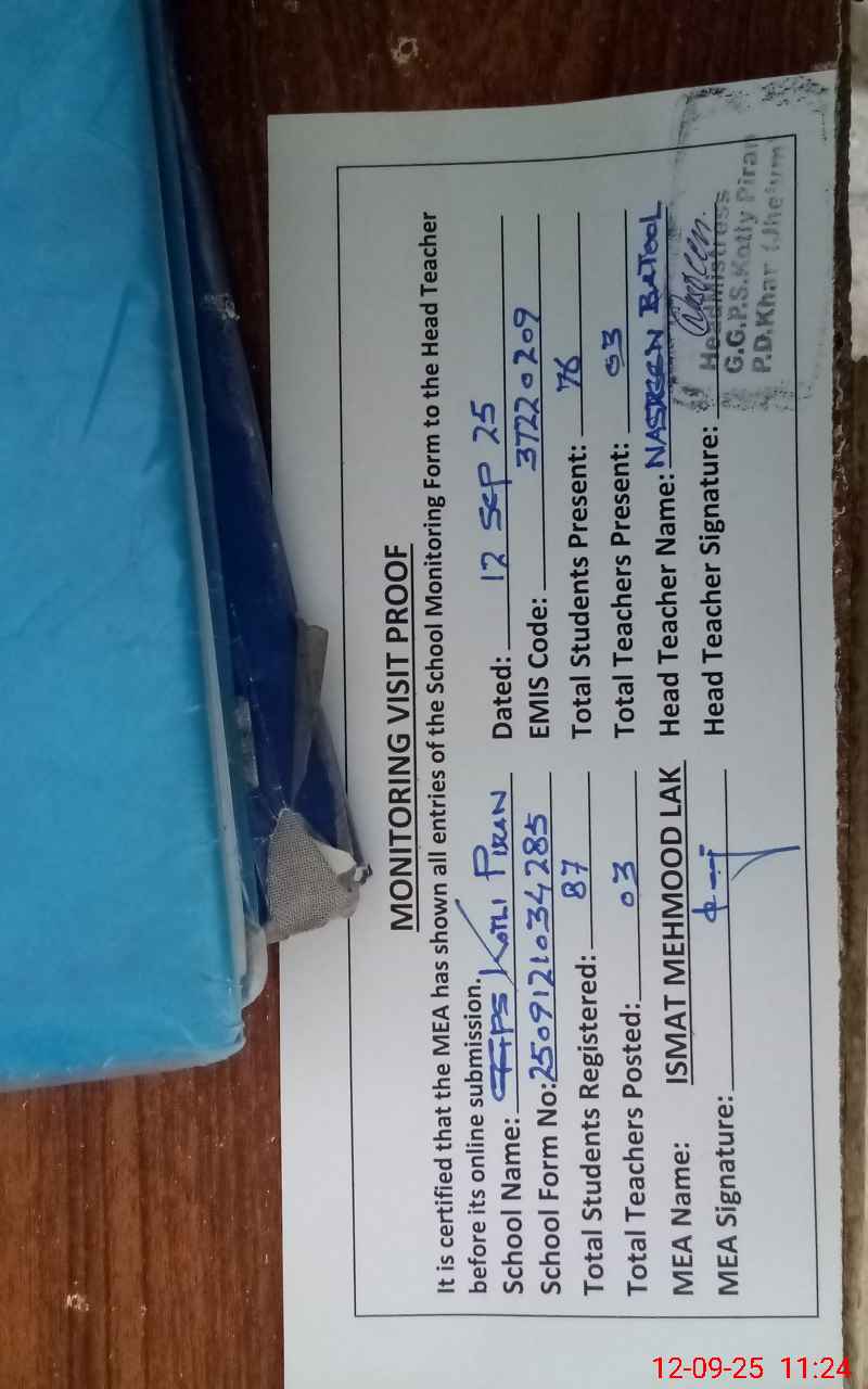 | EMIS Code: 37220209 | Name of School: GGPS KOTLI PIRAN | |||