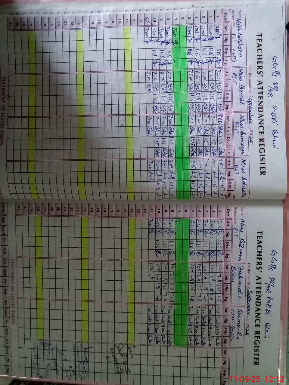 | No. of Students Present - Female | 0 | 0 | 0 | 0 | 0 | 0 | 6 | 8 | 9 | 0 | 0 | 23 | ||||