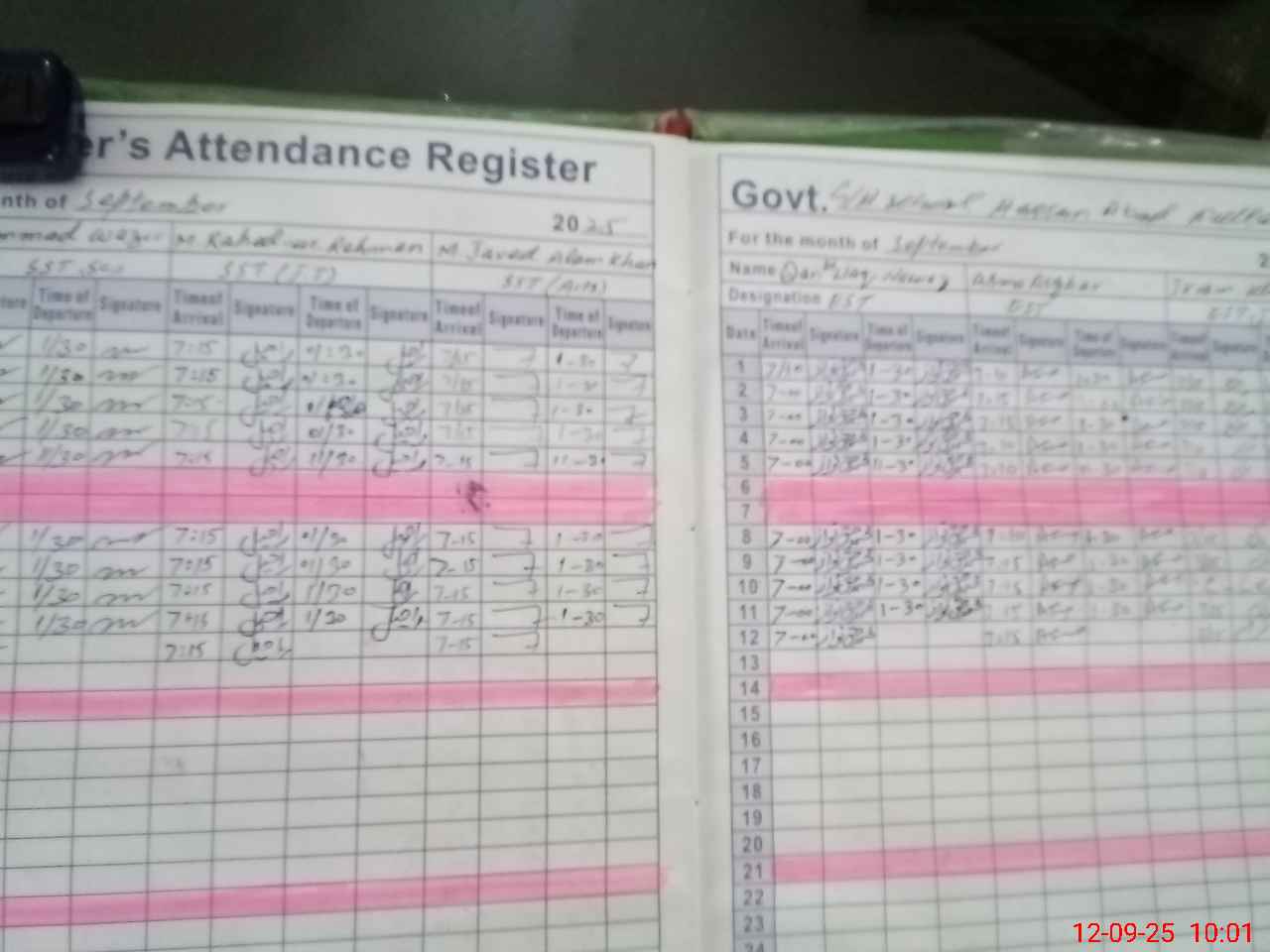 | Monitoring Date: 12-09-2025 | Start Time: 12-09-2025 09:52 AM | End Time: 12-09-2025 10:02 AM | Name of MEA: MA**** ULHA**** KH**** | |