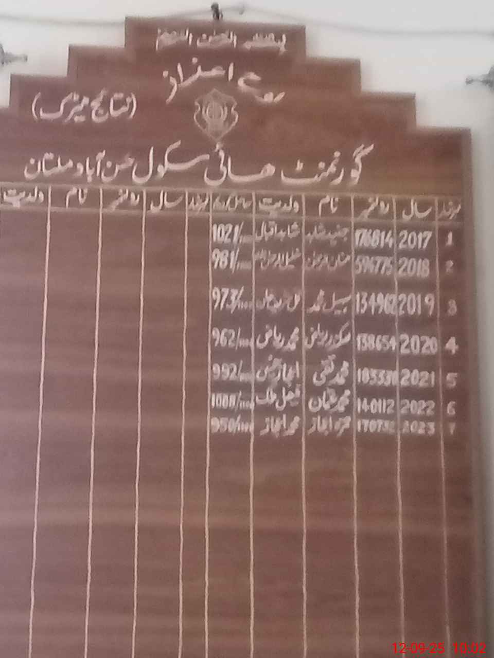 | District: MULTAN | Tehsil: MULTAN CITY | Markaz: SECONDARY-WING | Level: High | |
