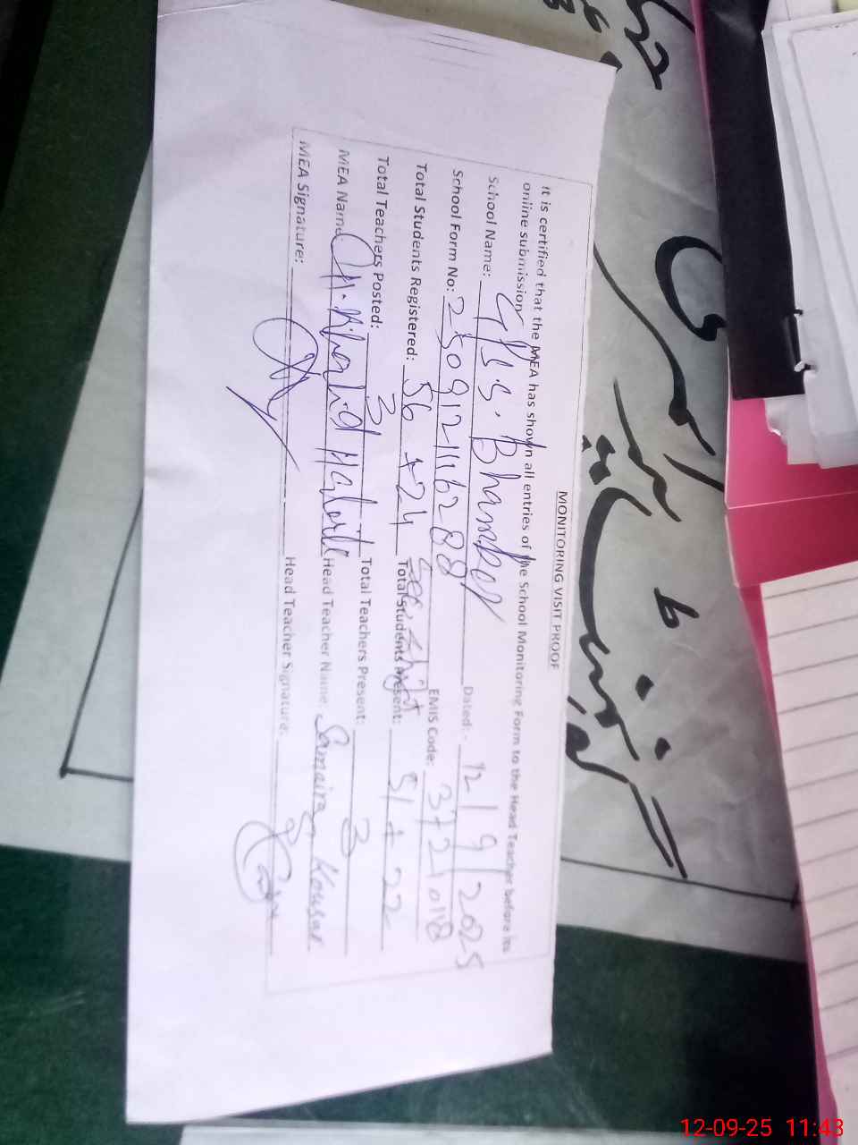 | EMIS Code: 37210118 | Name of School: GPS BHAMBER | |||