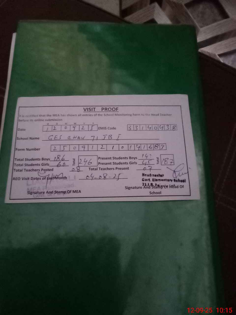 | EMIS Code: 33140438 | Name of School: GES CHAK 71 JB I | |||