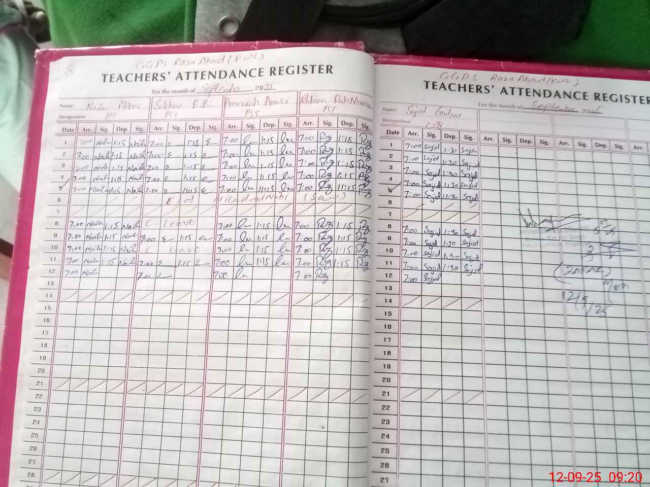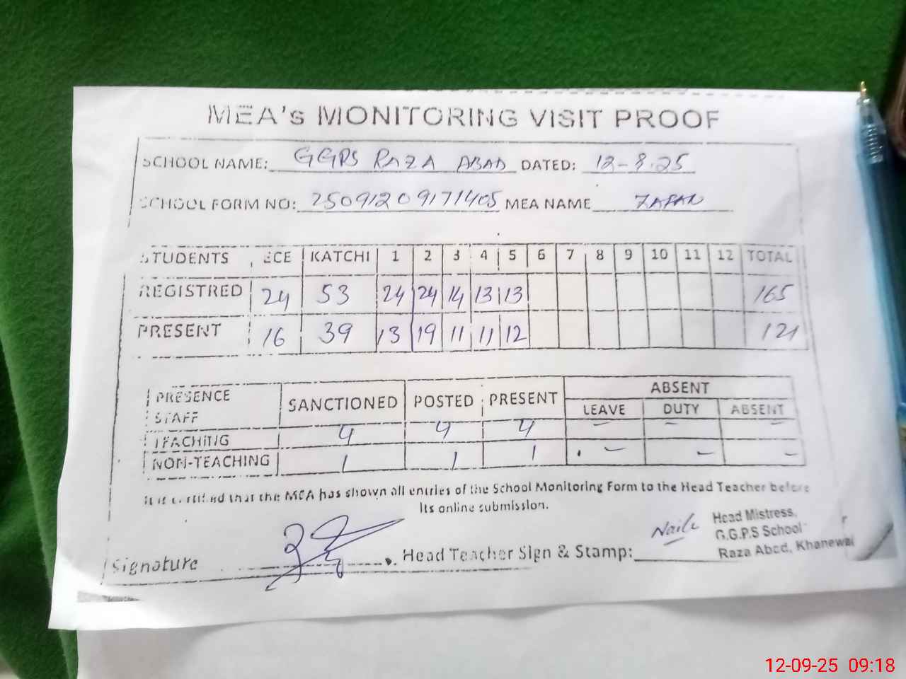 | Attendance Register | Head Teacher | MEA with School | Visit Proof |