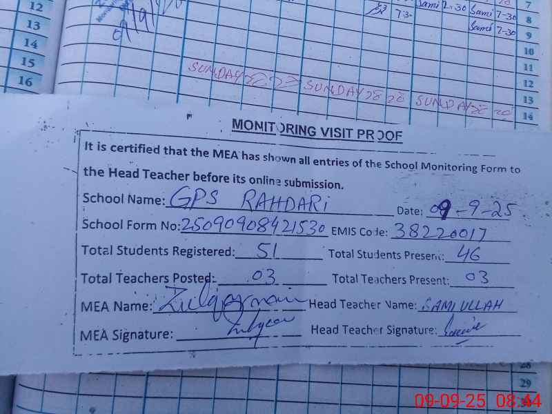 | EMIS Code: 38220017 | Name of School: GPS RAHDARI | |||