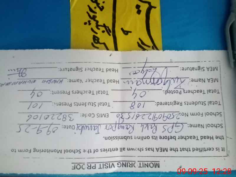 | Attendance Register | Head Teacher | MEA with School | Visit Proof |