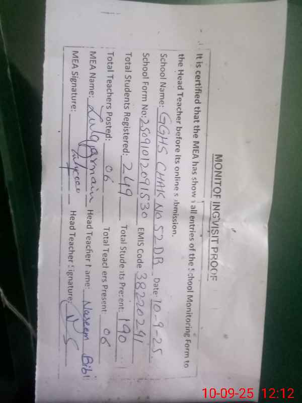 | EMIS Code: 38220241 | Name of School: GGHS CHAK NO. 52 DB NOORPUR | |||