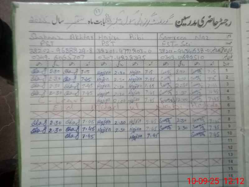 | CNIC | Full Name | Designation | R/C | Absence During Last Calender Month |
