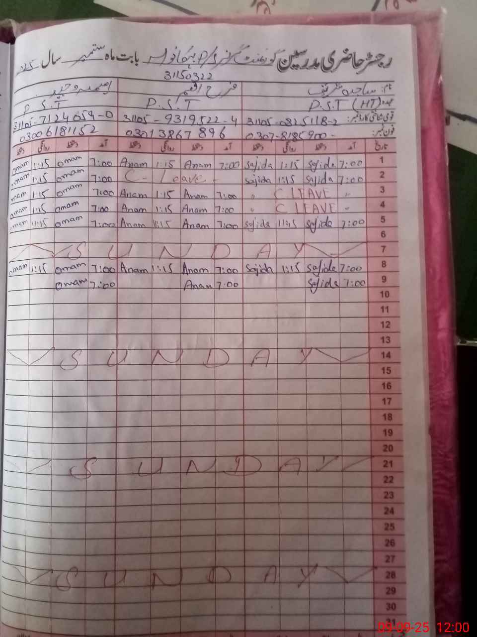 | Name: SA**** SH**** Designation: (School Headmaster's/Headmistress's) PST Phone/Cell Number: 03**** |