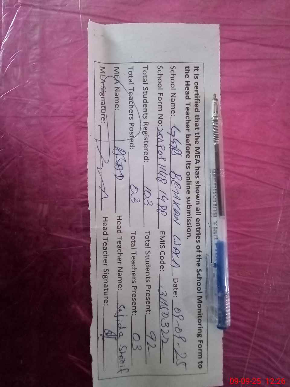 | EMIS Code: 31150322 | Name of School: GGPS BEHKAN WALA | |||