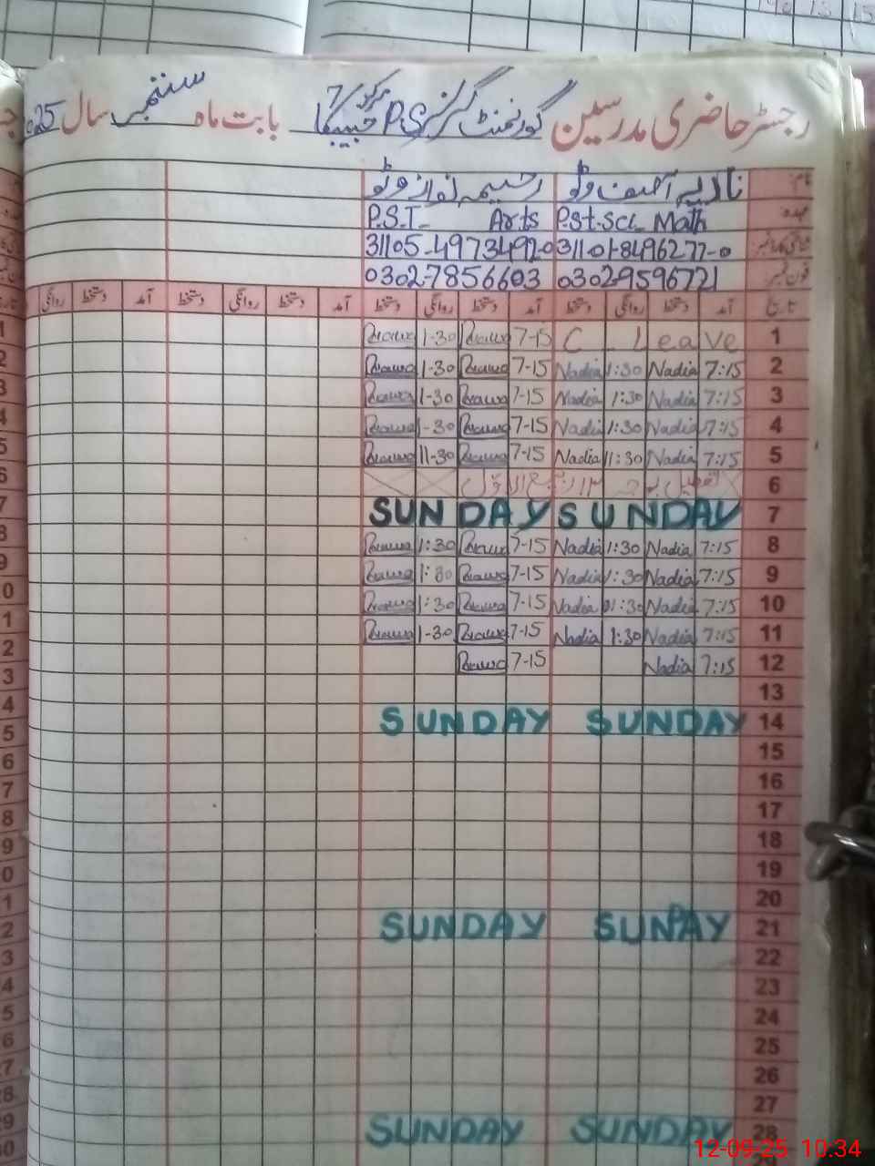 | CNIC | Full Name | Designation | R/C | Absence During Last Calender Month |